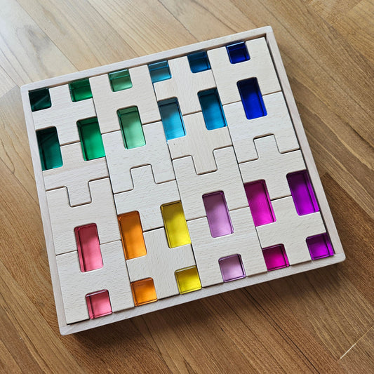 So beautiful to play with, and so well made. Absolutely love how this set is laid out, there is so much to build with and with the combination of blocks and lucites the possibilities are endless. My boys all love this set so much and are always building castles with it
