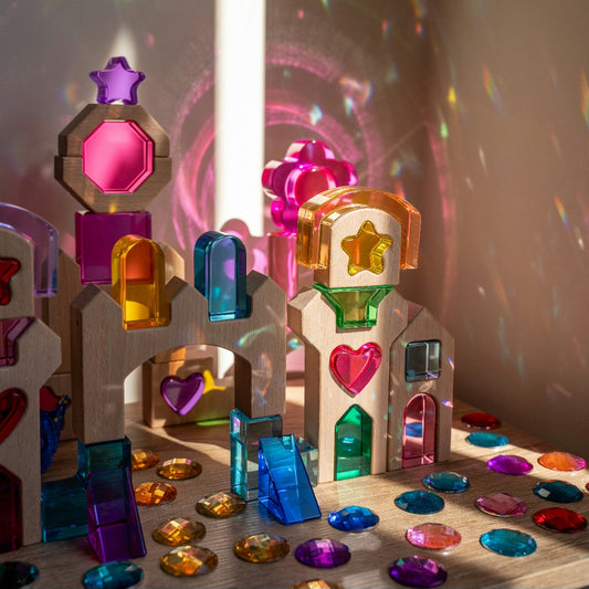 We’re obsessed with these Castle Blocks! The craftsmanship is beautiful, and the lucite inserts completely transform the way my son plays - light, color, and structure all in one. He builds castles, color-sorts, stacks, and even uses them on the windowsill to watch the colors shine through.