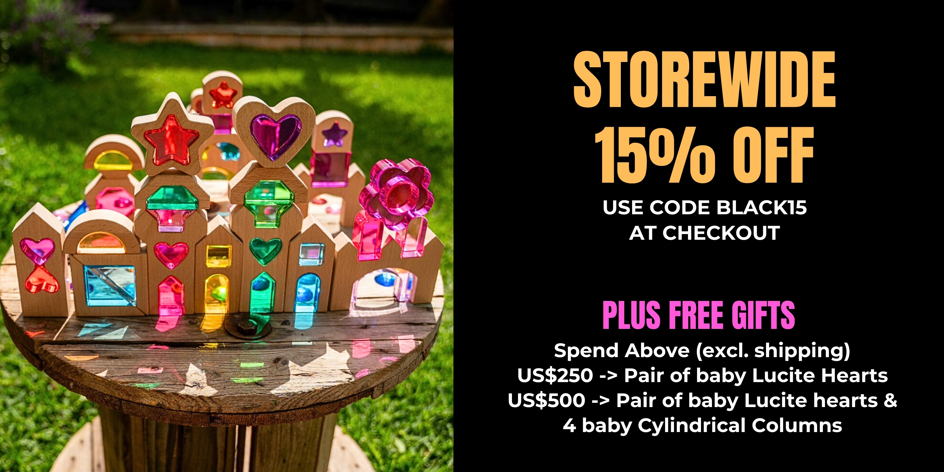 They’re sturdy, perfectly sanded, and the sizes mix so well with our other PLH pieces. Every build looks like a little piece of art, and the lucites catch the light in the most magical way. I can’t recommend them enough - they’re heirloom-quality blocks that inspire hours of open-ended play.