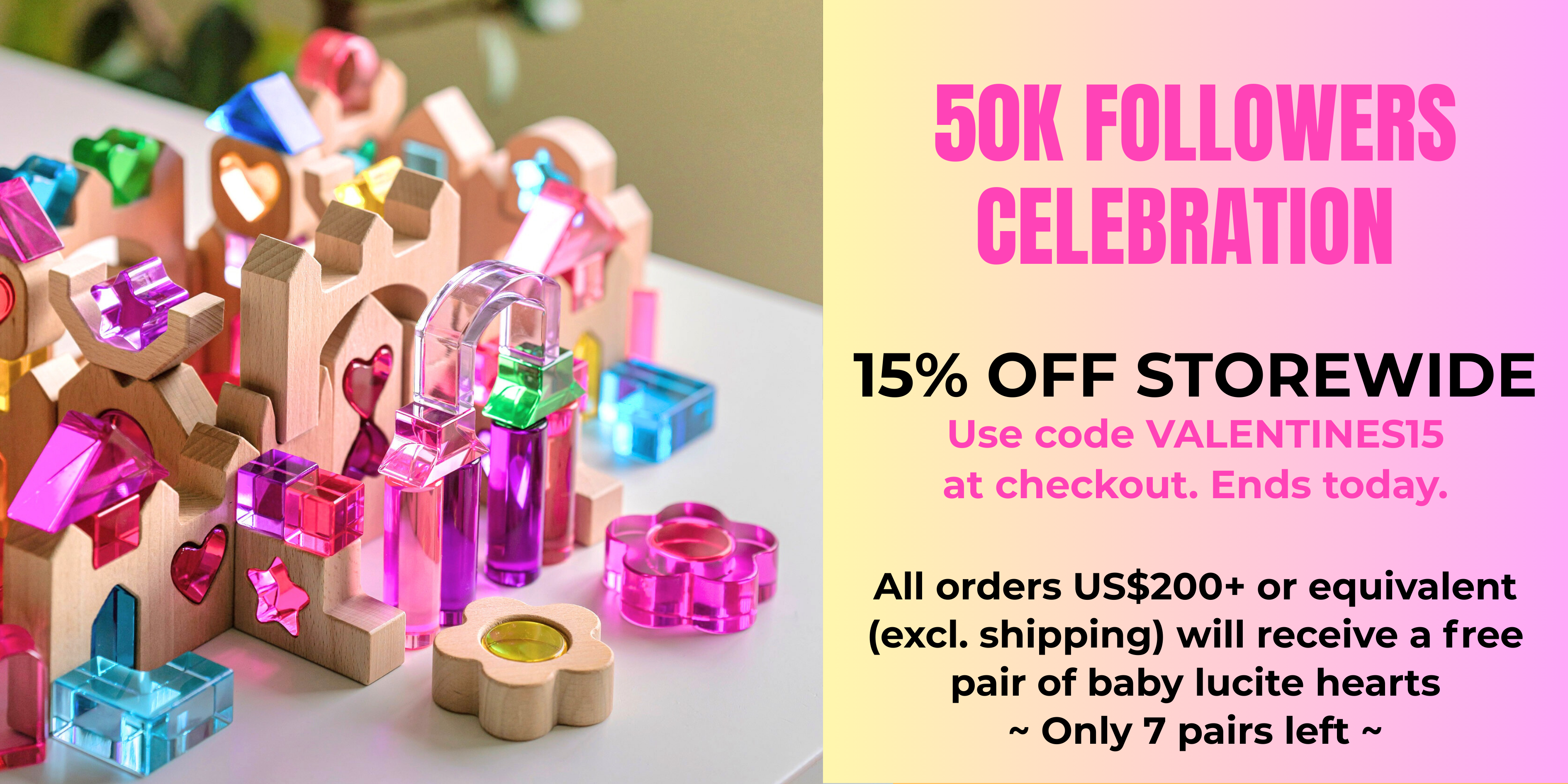 These are the sweetest toy, I really love the array of colours that the hearts come in. There are so many ways to play with them and my kids love building and matching the colours as well. Highly recommend!