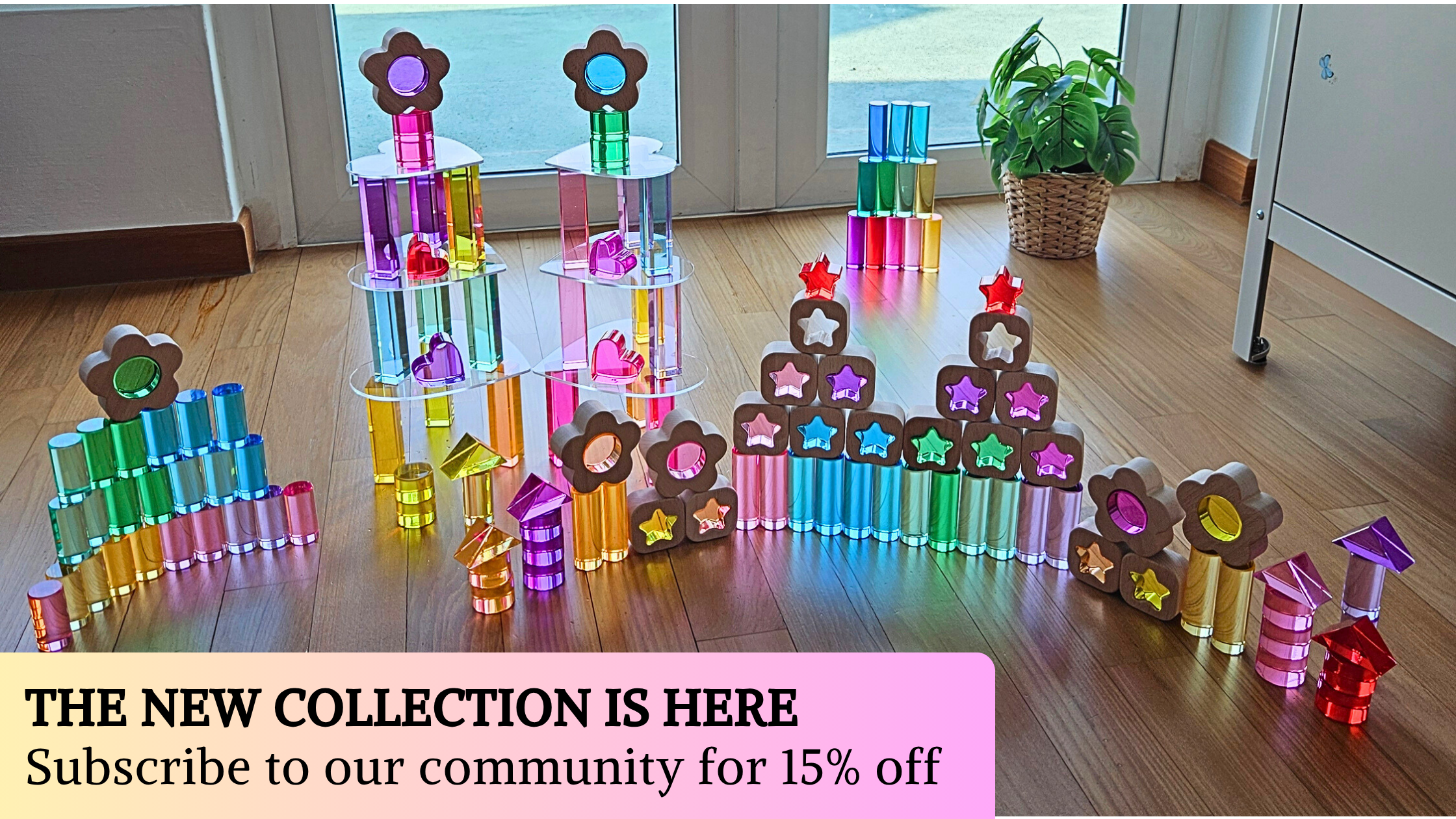 I’m absolutely in love with the lucite hearts. The quality is beautiful, the colors catch the light in such a calming way, and my children keep reaching for them again and again. They invite open-ended play, curiosity, and quiet moments of focus. One of those toys that feels both magical and meaningful.