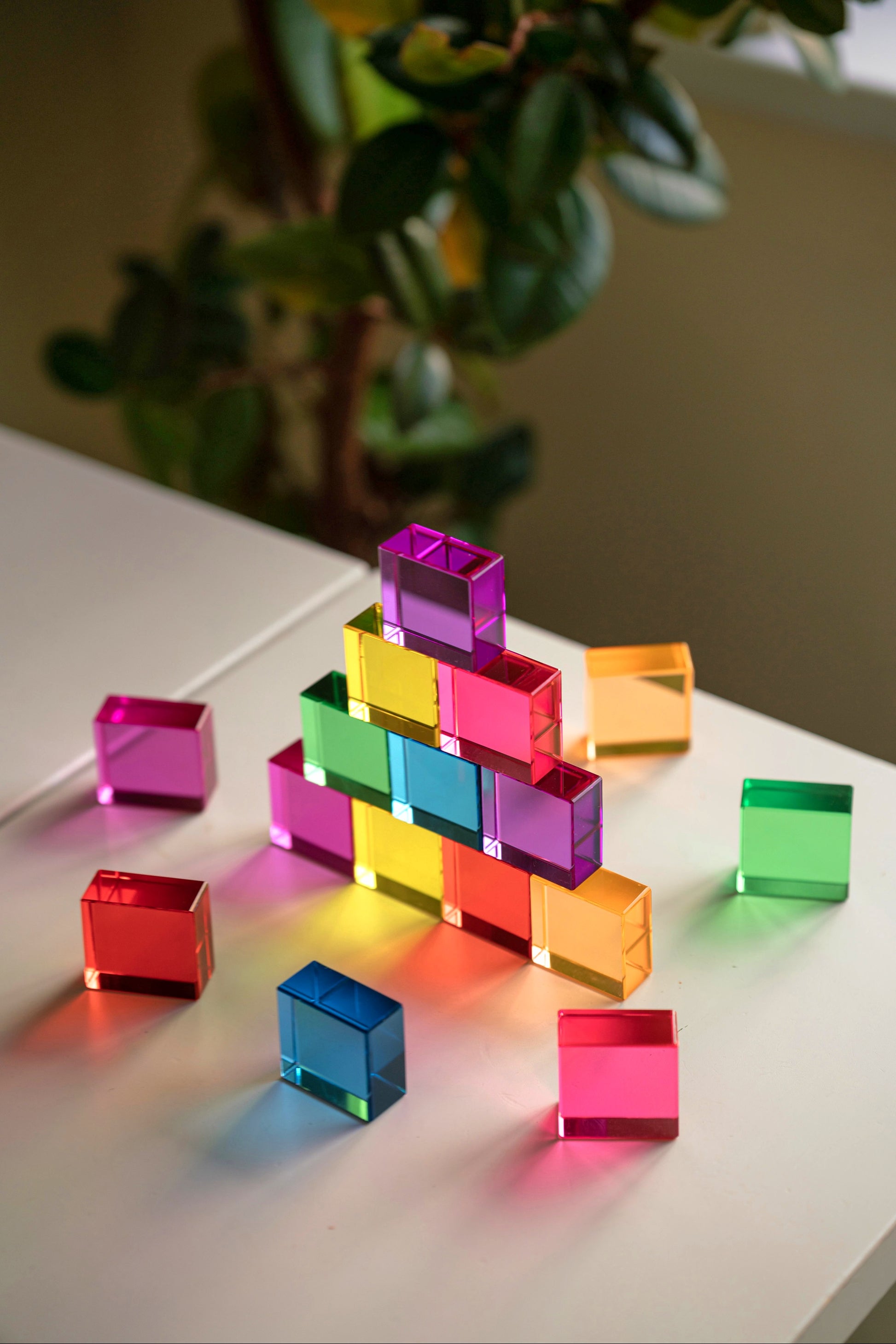 Whether used for stacking, small worlds, colour sorting, or spectacular light play, the Majestic Lucite Squares make every creation feel extraordinary.