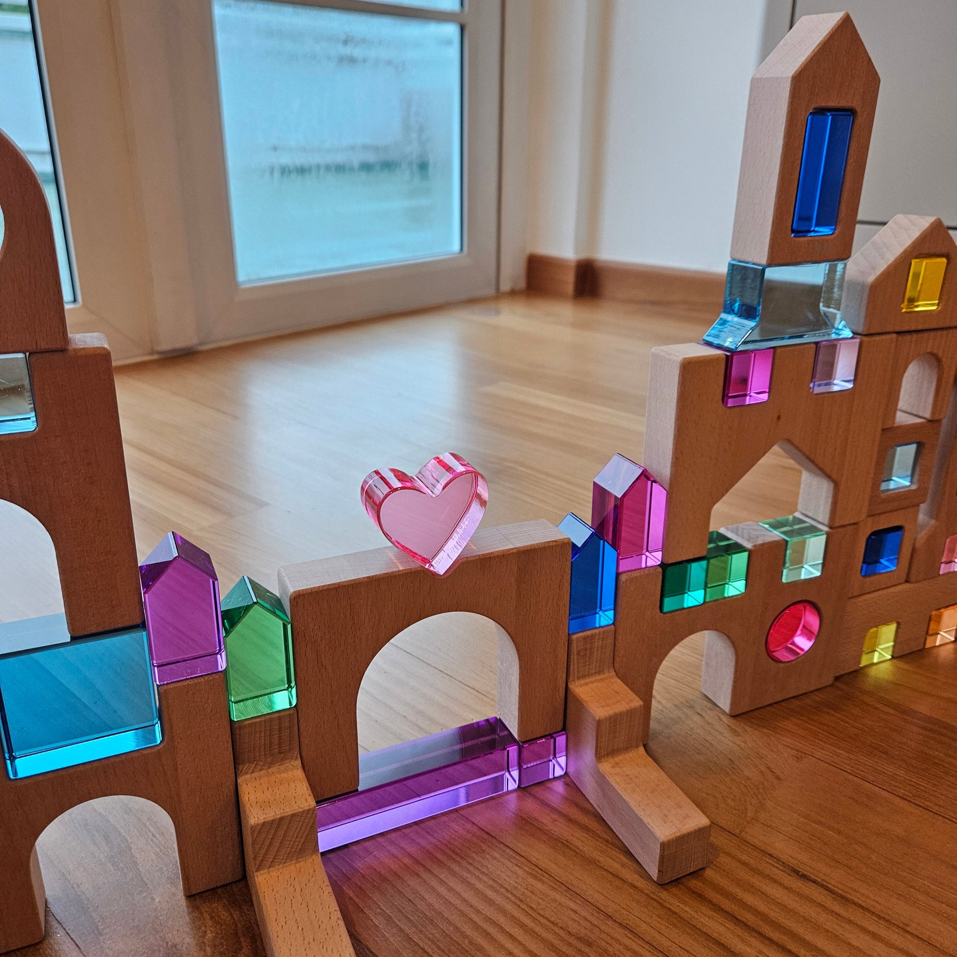 Step into a realm of wonder with the Heart of the Lucite Kingdom — a breathtaking, limited-edition block set that blends timeless beauty with open-ended play. Designed with love by the founder of Playful Little Hearts, this is more than a toy — it's a keepsake, a story starter, and a spark for lifelong creativity.