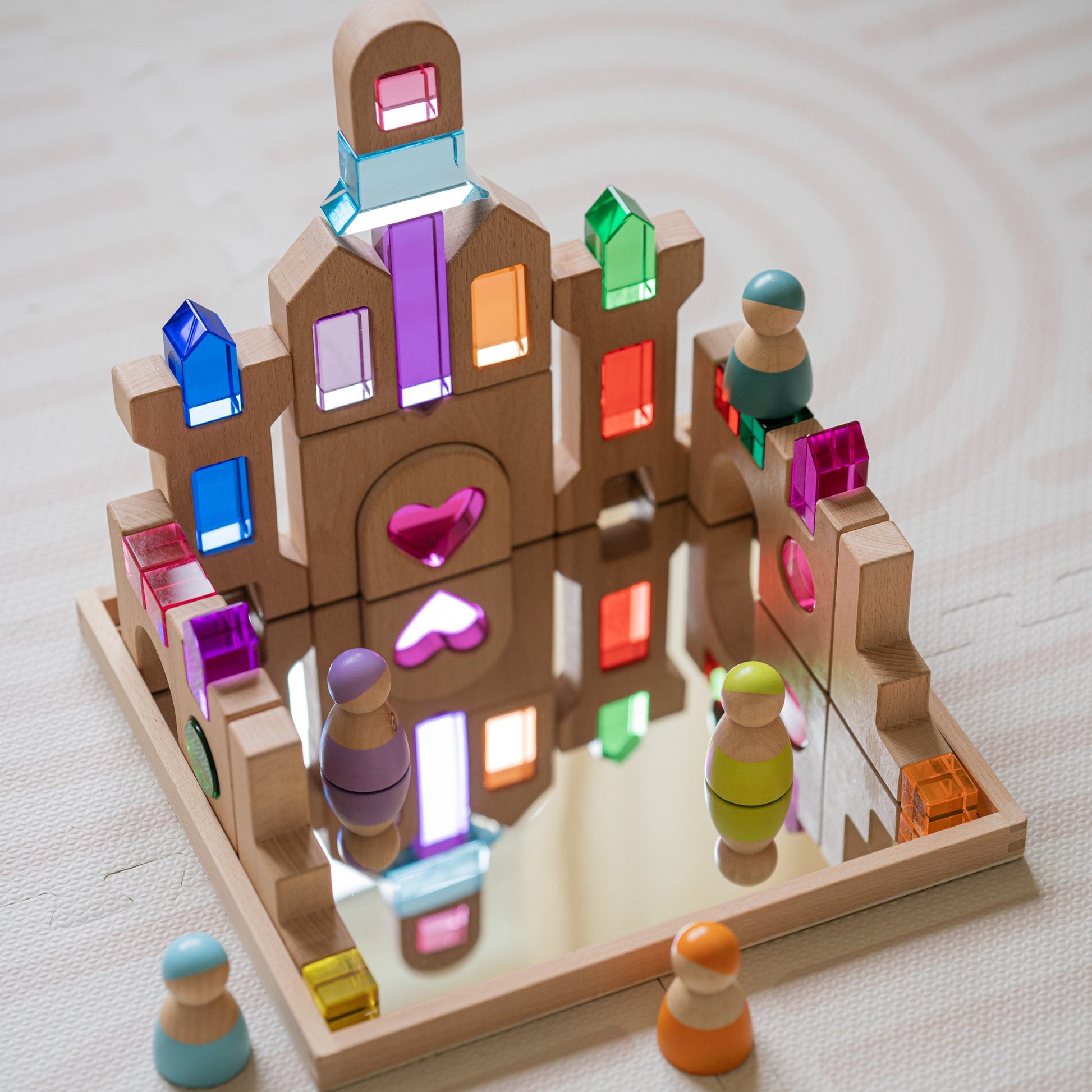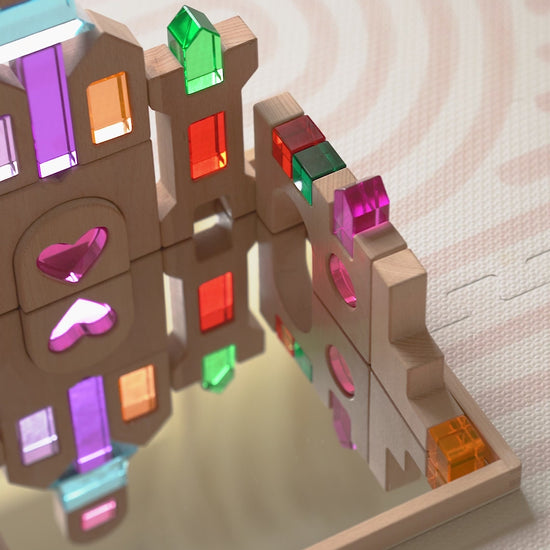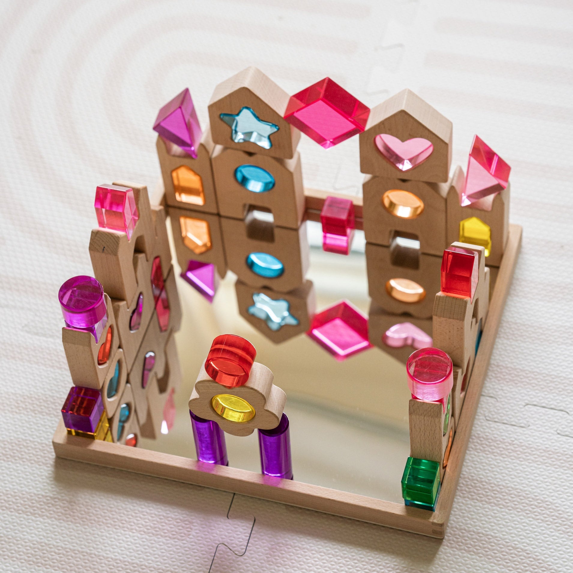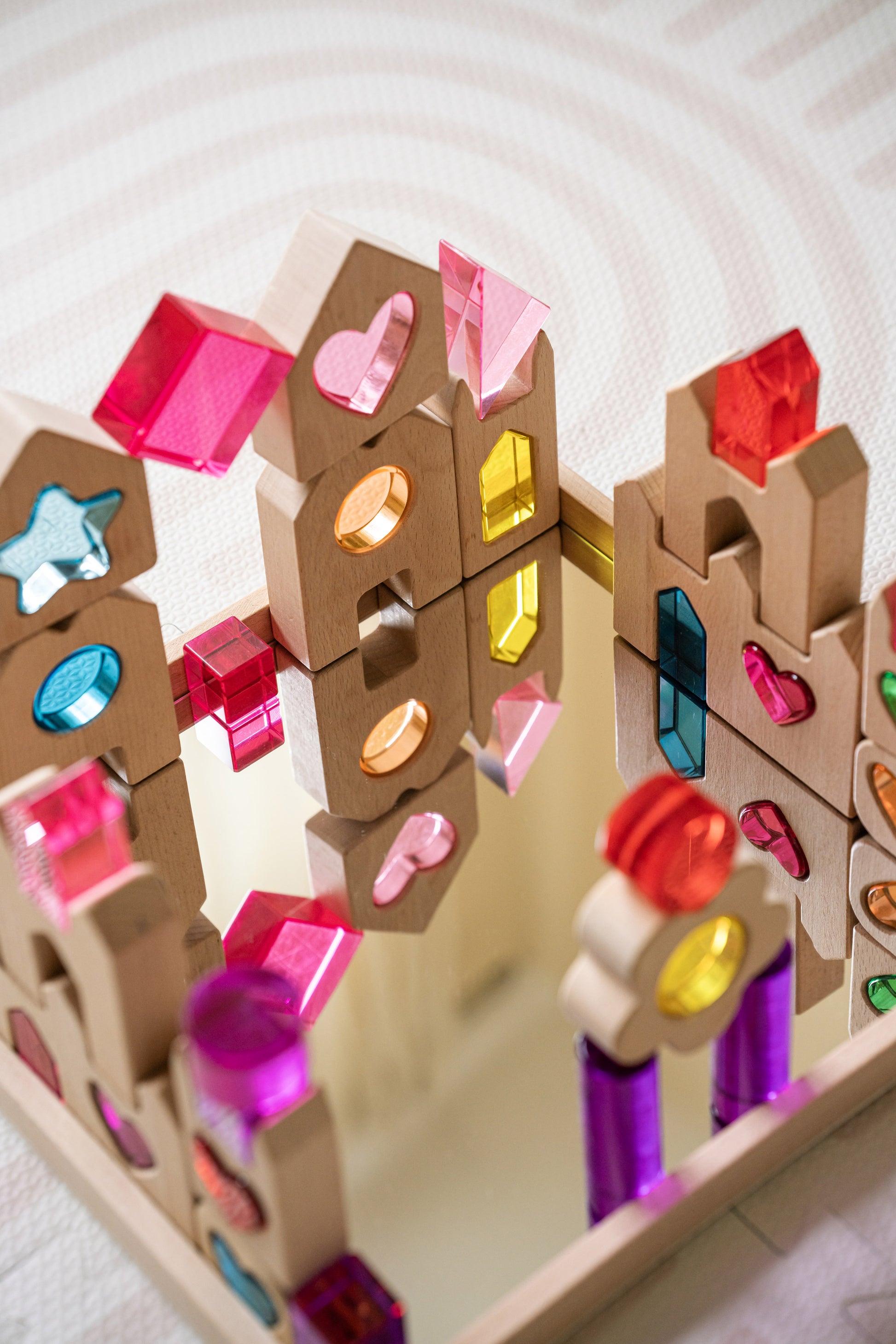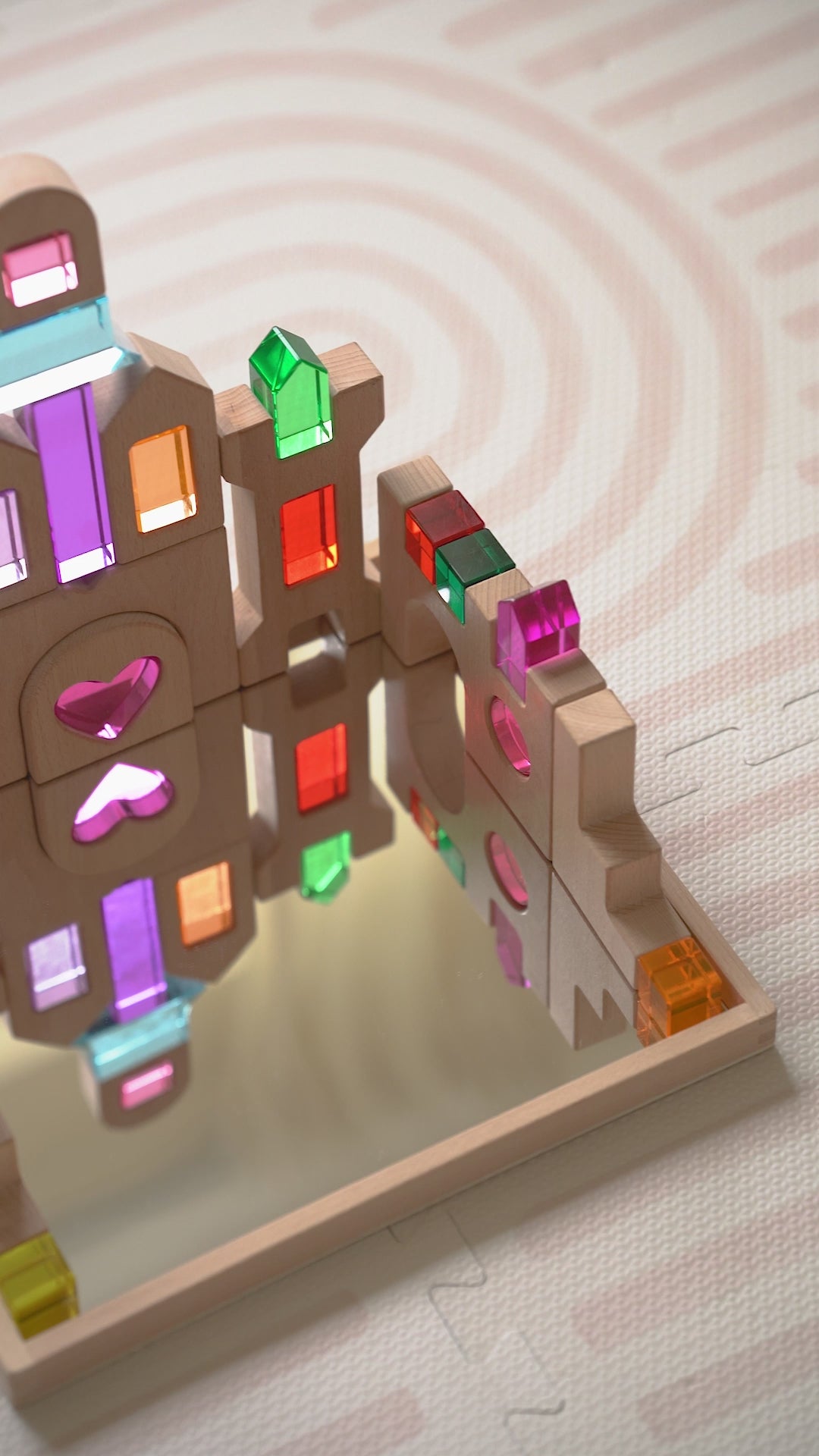 Children will love watching light bounce and colours shimmer as their blocks reflect and glow on the mirrored surface. It turns every build into something truly enchanting — a castle that sparkles, a tower that gleams, or a pattern that dances in the light.