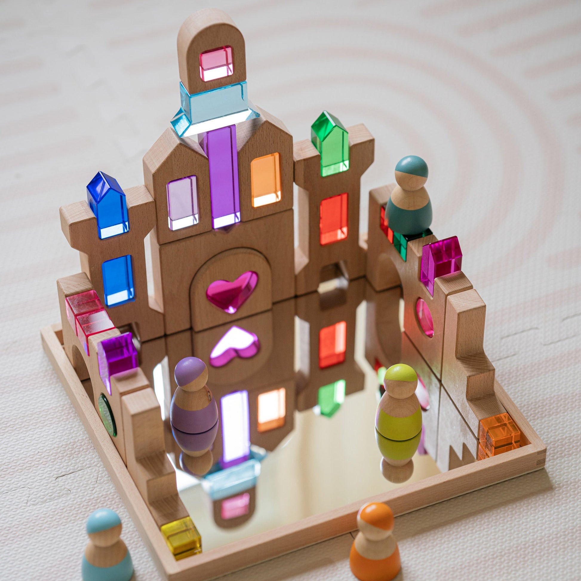 Our Mirror Tray is the same size as the Castle Set tray — perfectly designed to extend your Lucite Kingdom builds or to create a whole new world of sensory wonder.