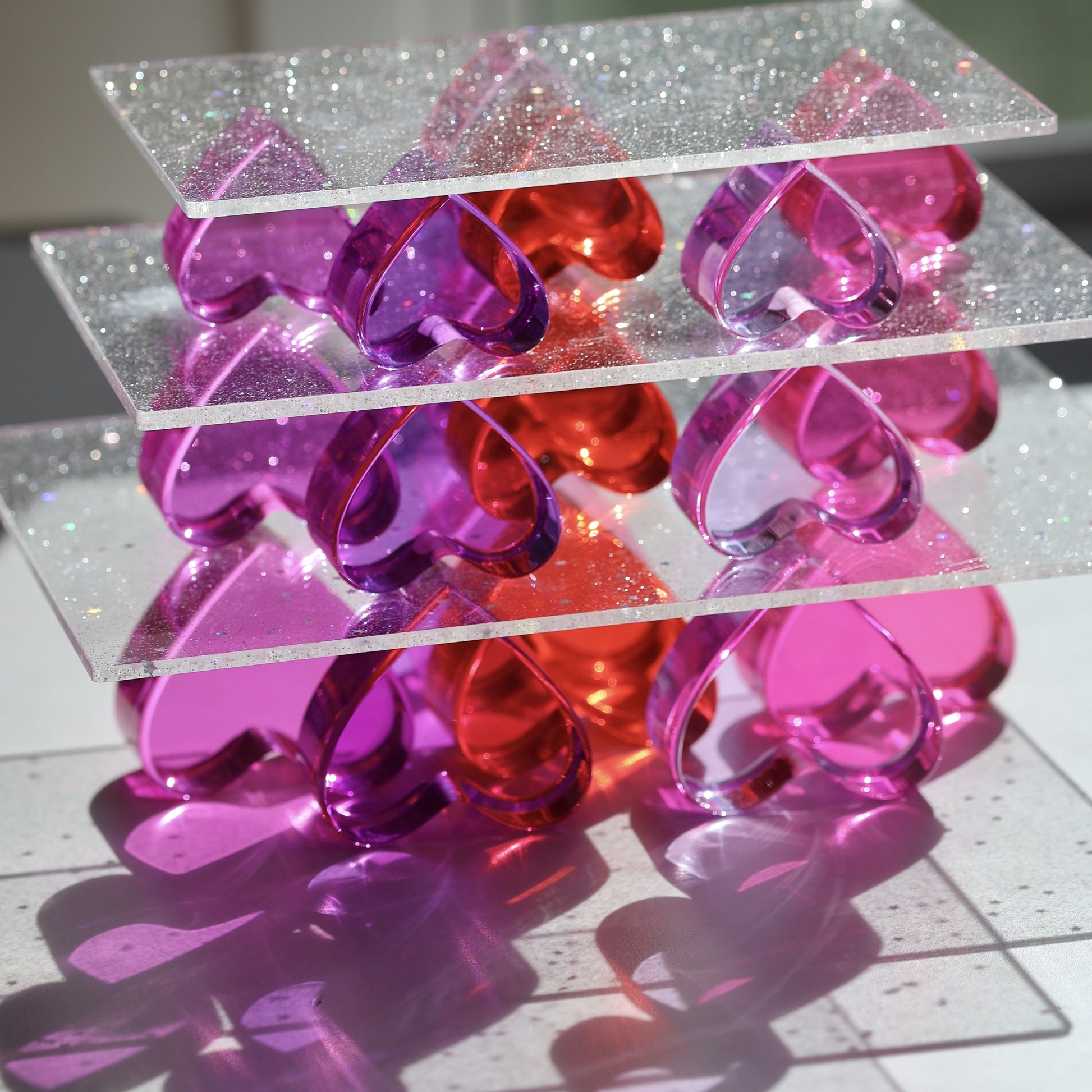 The Forever Hearts Family brings together our beloved large and small lucite hearts, familiar favourites from our existing collection, alongside a brand new medium size created exclusively for this set and available nowhere else. Three sizes that nest together beautifully, layer endlessly and make every build richer, more dimensional and more magical than ever before.